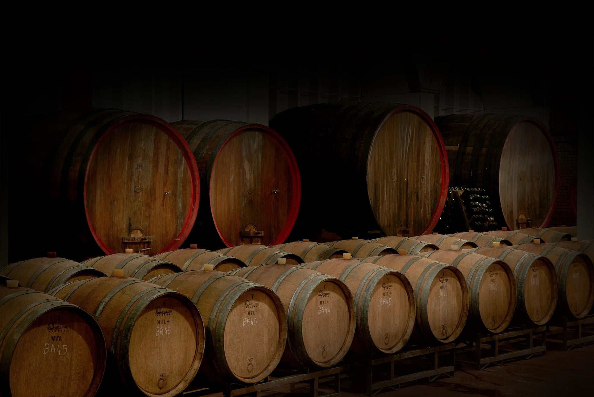 Nel cuore della Cantina del Taburno, l’antica bottaia custodisce il tempo e i profumi del vino. Tra grandi botti di rovere e barrique, i nostri rossi riposano lentamente, respirando la storia e la tradizione di un territorio che da sempre vive di vino e passione.